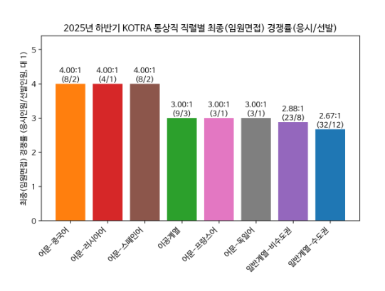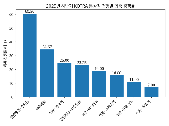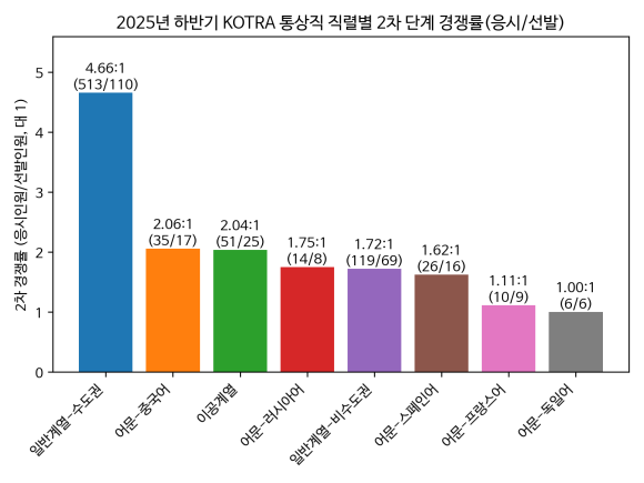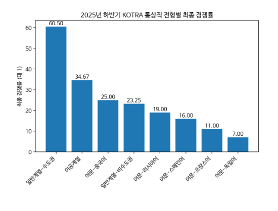 안녕하세요. 2025년 하반기 코트라 통상직 신입사원 채용 경쟁률을 정리해보겠습니다. 아래 통계는 알리오(ALIO) 공개 자료를 바탕으로 구성했습니다.